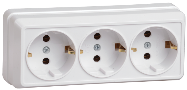 Розетка 3-мест. в сборе с корпусом с З/К откр. уст-ки16А 250В IP20 белый IEK ОКТАВА /1