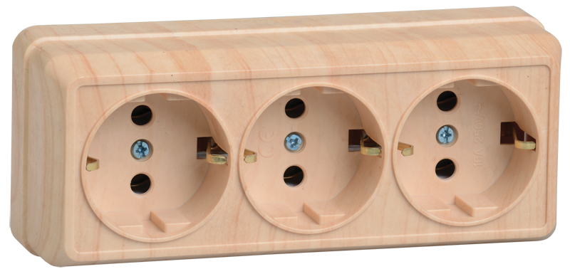 Розетка IEK ОКТАВА 3-мест. в сборе с корпусом с З/К откр. уст-ки16А 250В IP20 дерево