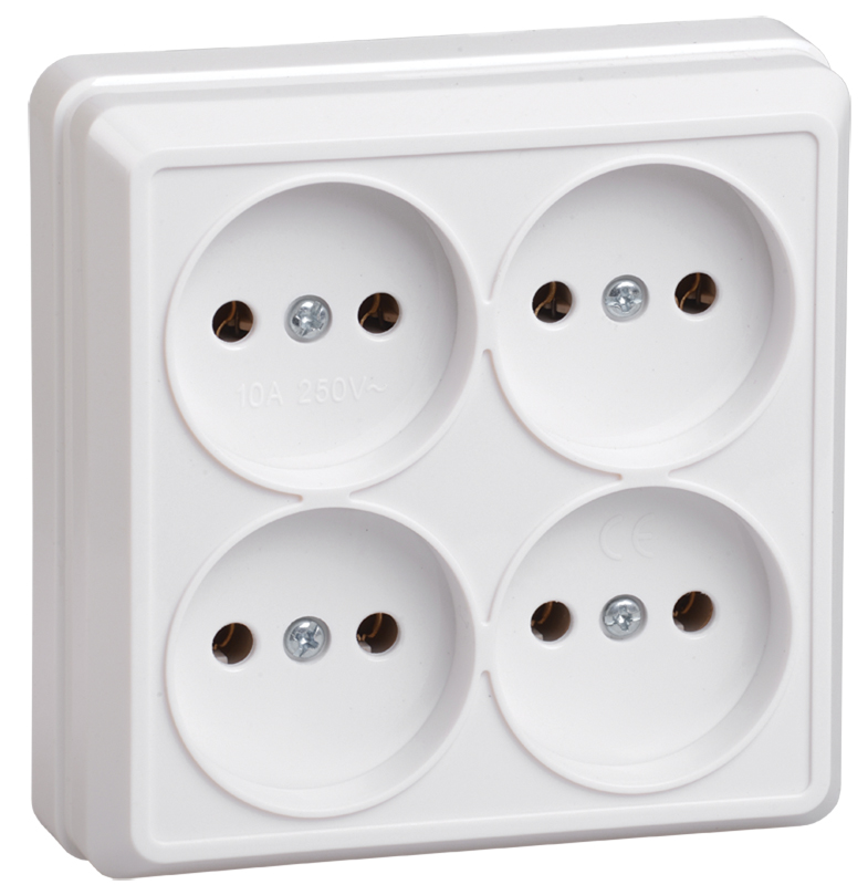 Розетка IEK ОКТАВА 4-мест. в сборе с корпусом без З/К откр. уст-ки10А 250В IP20 белый