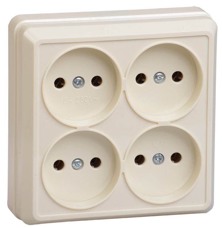 Розетка IEK ОКТАВА 4-мест. в сборе с корпусом без З/К откр. уст-ки10А 250В IP20 кремовый