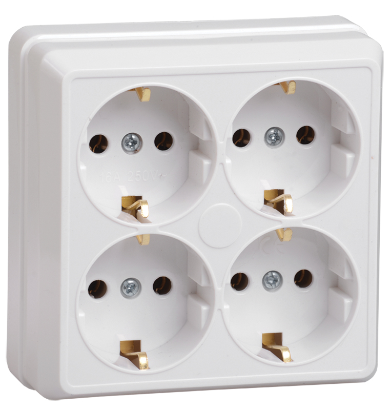 Розетка IEK ОКТАВА 4-мест. в сборе с корпусом с З/К откр. уст-ки16А 250В IP20 белый