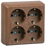 Розетка IEK ОКТАВА 4-мест. в сборе с корпусом с З/К откр. уст-ки16А 250В IP20 дерево ERO41-K04-16-DC