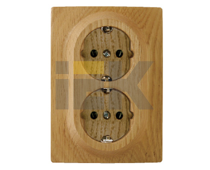 Розетка IEK ТЕРРА 2-мест. в сборе с корпусом дерево