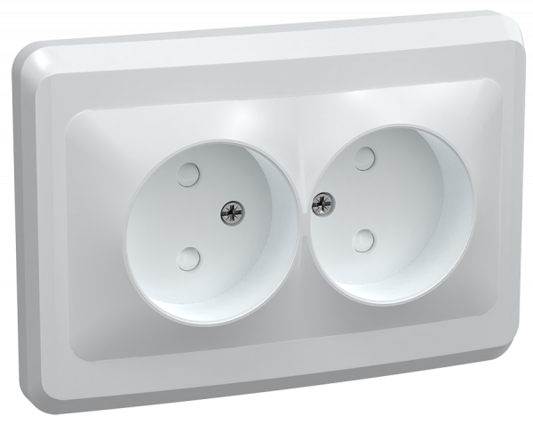 Розетка IEK Вега 2-мест. в сборе с корпусом без З/К скр. уст-ки10А 250В IP20 белый