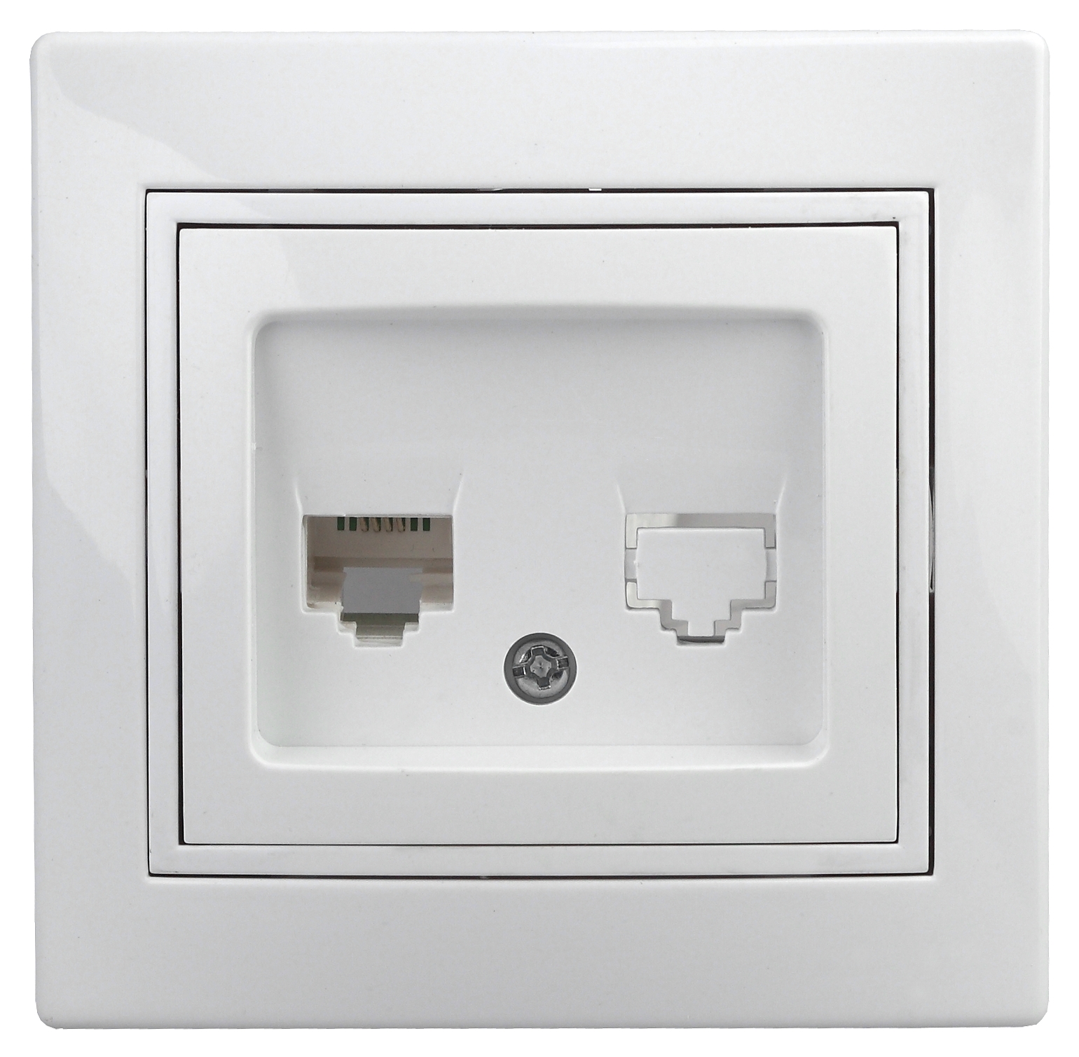 Розетка RJ45 серии Intro Plano скрытой установки цвет белый 1-303-01. Номинальные характеристики . Розетка выполнена из термопласта, укомплектована одноместной рамкой. Для установки 2-х и более устройств в несколько подрозетников в ряд дополнительно используются многоместные рамки: 2-х постовая - 1-502-хх, 3-х постовая 1-503-хх, 4-х постовая - 1-504-хх (где хх - цветовой код: 01 - белый, 02 - слоновая кость, 03 - алюминий, 04 - шампань, 05 - антрацит, 10 - венге, 11 - сосна).