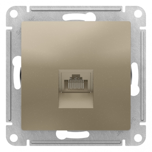 Механизм Systeme Electric (ранее Schneider Electric) серии AtlasDesign в цвете шампань розетки компьютерной с разъёмом RJ45 категории 5е предназначен для удобного и быстрого подключения вашего компьютера к локальной вычислительной сети. Лицевые детали из качественного ABS-пластика, устойчивого к царапинам и УФ-излучению. Усиленные прямые монтажные лапки для лучшей фиксации механизма в монтажной коробке.