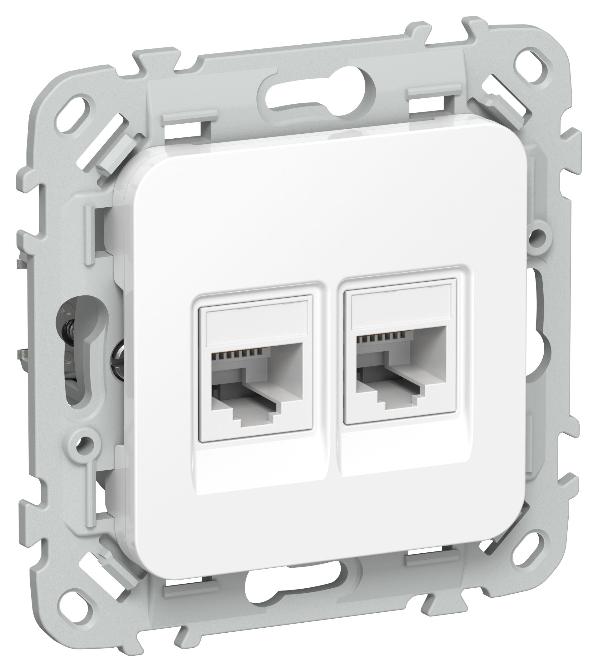 Розетка/коробка коммуникационная крепление в распор и на шурупах 2x rj45 8(8) 5e белый IEK