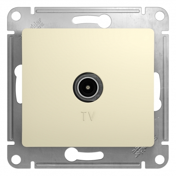 Механизм Systeme Electric (ранее Schneider Electric) серии Glossa (цвет бежевый) розетки TV оконечной 1DB предназначен для подключения телевизора к телевизионной сети. Оконечная розетка может устанавливаться как отдельно, так и в конце подключения «в линию». Выполнен из материала PС+ASA, стойкого к УФ-излучению и появлению царапин.