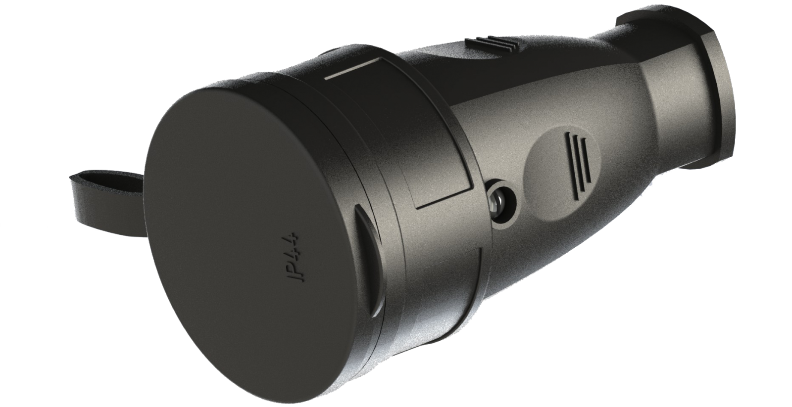 Розетка переносная 16А с/з черный каучук IP44 с крышкой, аналог358105 PlexUp /100