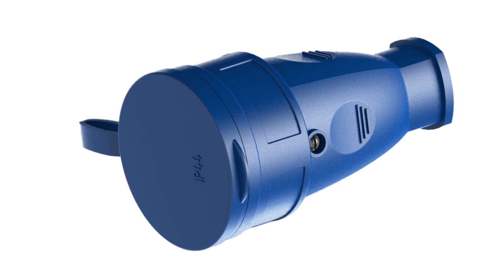 Розетка переносная 16А с/з синий каучук IP44 с крышкой PlexUp /100