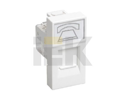 Модульные электроустановочные изделия 45х45 серии ПРАЙМЕР предназначены для организации рабочего места с применением кабель-каналов, напольных лючков или розеточных блоков, а также для открытого монтажа в коробки типа КМКУ.Розетка телефонная RJ-11 предназначена для подключения устройств абонентской телефонной техники, устанавливаемых в жилых, общественных и промышленных помещениях, к линиям телефонной сети. Розетка на 1 вход. Комплектуются одним модулем Keystone Jack категории 3 IDC. Размеры, ВхШхГ,мм: 45х22,5х41,7. Цвет - белый.