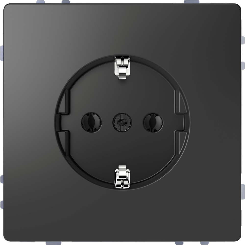 Розетка Schneider Electric Merten серии D-Life QuickFlex SCHUKO (антрацит, скрытая установка) с безвинтовыми зажимами, заземлением, без шторок предназначена для применения в сетях до 250В, на ток до 16А. Заземление обеспечивает безопасность при косвенном прикосновении.