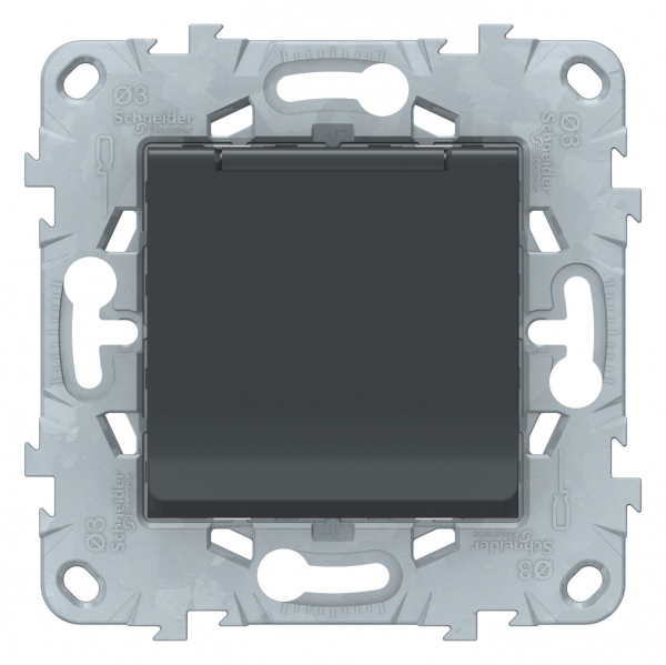 Розетка Schneider Electric UNICA NEW (антрацит) с заземлением, со шторками, с крышкой предназначена для сетей до 250 В на ток до 16 А.- Привлекательный внешний вид.