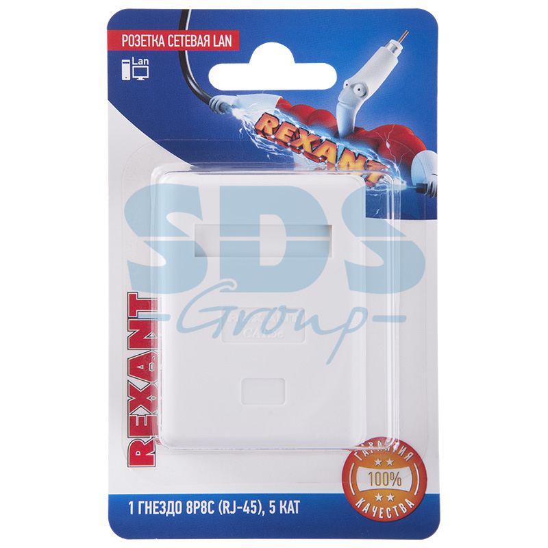 Сетевая розетка LAN предназначена для подключения компьютерныx и телефонныx кабелей к сети. Выполнена в белом цвете, оснащена одним гнездом RJ-45 под разъем 8Р8С (8 посадочныx мест и 8 контактов). Кабель фиксируется с помощью зажимныx контактов.Розетка имеет квадратную форму и устанавливается на стену накладным способом.