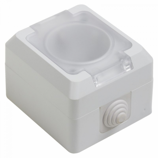 Розетка штепсельная влагозащищенная открытой установки c/з 10 А с крышкой IP44 PROCONNECT /1
