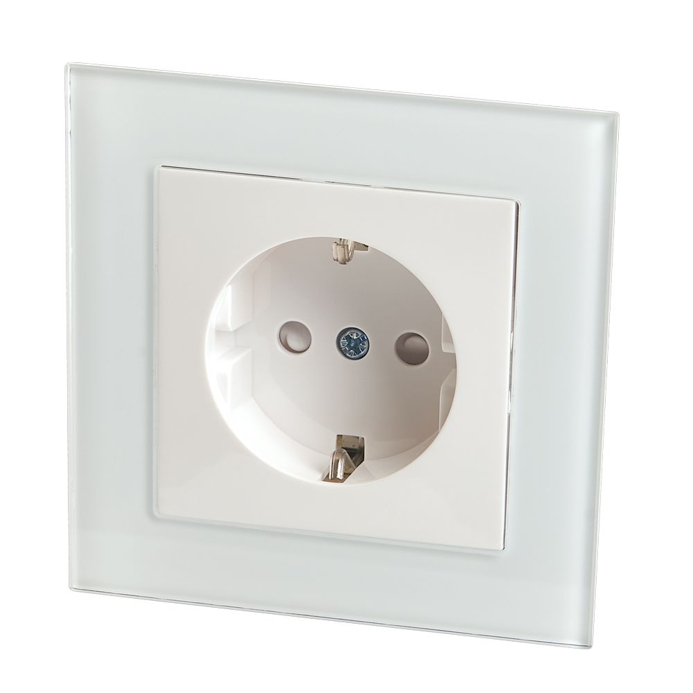 Розетка STEKKER GLS16-7010-01 на 1 гнездо, с заземлением. Материал: Закаленное стекло, ABS пластик, полипропилен, латунь, цвет белый, размер 84*84*35мм. Номинальное напряжение 250, номинальный ток 16А, диапазон рабочих температур 0..+35°C, IP20