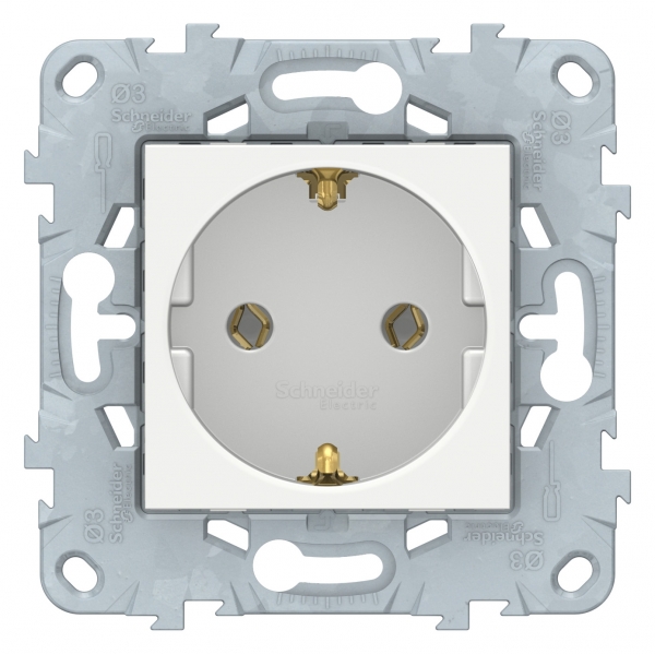 Розетка Schneider Electric UNICA NEW (белый) с заземлением, без шторок, с винтовыми зажимами предназначена для сетей до 250 В на ток до 16 А.- Привлекательный внешний вид.