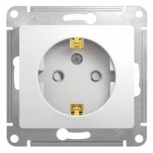 Механизм Systeme Electric (ранее Schneider Electric) серии Glossa (цвет белый) розетки одинарной с заземлением и шторками подходит для сетей 250 В, на ток 16 А. Заземляющий контакт обеспечивает дополнительную защиту от удара электрическим током. При наличии заземления электрический потенциал уходит в землю, защищая человека. Выполнен из материала PС+ASA, стойкого к УФ-излучению и появлению царапин. Эргономичные клеммы розеток расположены в один ряд.