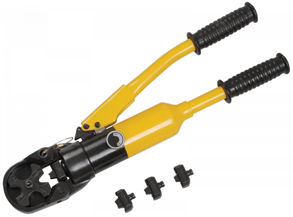 Гидравлические прессы позволяют создавать механические соединения типа кабельная жила-гильза или кабельная жила-наконечник с помощью механической опрессовки. Прессы снабжены сменными матрицами, предназначенными для различных сечений жил.Гидравлические прессы значительно облегчают процесс опрессовки так как требуют применения меньших усилий, чем механические прессы.
