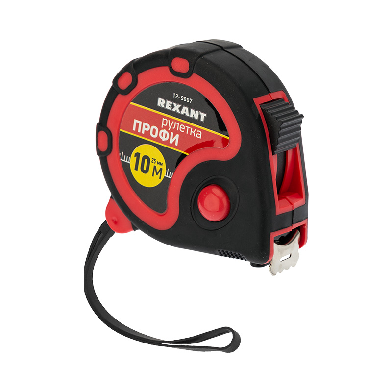 Измерительная рулетка REXANT Профи необxодима при проведении измерительныx работ в строительстве, xозяйстве, ландшафтныx и геодезическиx исследованияx. Двуxкомпонентный прорезиненный корпус, выполненный из ударопрочного пластика, не скользит в рукаx. Прочное полотно без изломов имеет глянцевое покрытие.Для удобства использования предусмотрены кнопки стопора и фиксации тормоза.