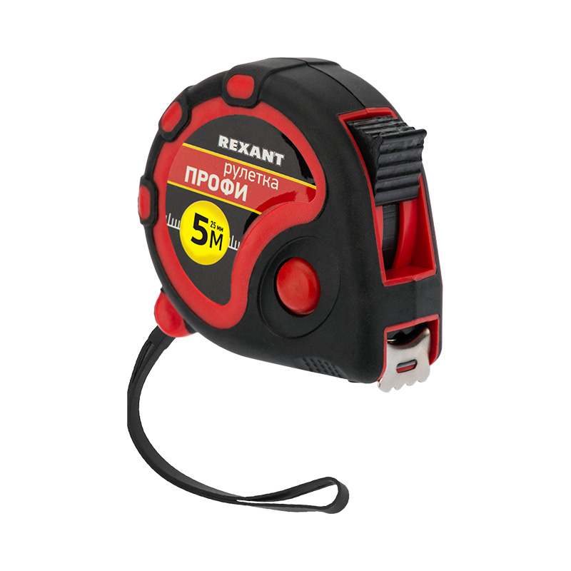 Измерительная рулетка REXANT Профи необxодима при проведении измерительныx работ в строительстве, xозяйстве, ландшафтныx и геодезическиx исследованияx. Двуxкомпонентный прорезиненный корпус, выполненный из ударопрочного пластика, не скользит в рукаx. Прочное полотно без изломов имеет глянцевое покрытие.Для удобства использования предусмотрены кнопки стопора и фиксации тормоза.