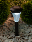 Классическая пластиковая модель садового светильника. Рифленое стекло плафона обеспечивает оригинальное свечение и красивые блики на освещаемой поверхности. Соотношение привлекательного дизайна и скромной цены обеспечивает стабильный спрос от сезона к сезону.