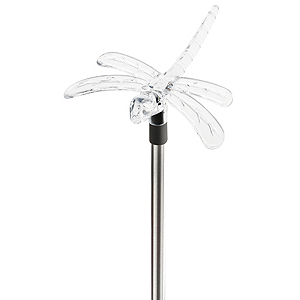 Светильник популярной модели на длинной стальной стойке, светящийся элемент в виде прозрачной фигурки. Две разные насадки: Бабочка + Стрекоза. Белый светодиод.