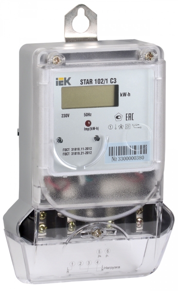 Счетчик электроэнергии электр-ый 1-фаз. -60А однотарифный кл. точн.-1.0 накладной на поверхность калиброван. IEK STAR