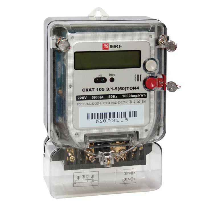 Счетчик СКАТ 105Э/1-5(60) ТОИ4 П1 5-60А 1*220 мнт кл т 1 оптопорт RS485 ЖКИ EKF PROxima /12