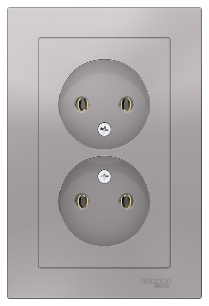 Розетка двойная в сборе Systeme Electric (ранее Schneider Electric) серии AtlasDesign в цвете алюминий без заземления и без шторок подходит для сетей 250 В, на ток 16 А. Лицевые детали из качественного ABS-пластика, устойчивого к царапинам и УФ-излучению. Усиленные прямые монтажные лапки для лучшей фиксации механизма в монтажной коробке. Двойная розетка позволяет подключить два устройства в одном месте. Изделие поставляется в комплекте с рамкой того же цвета.