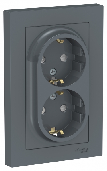 Розетка двойная в сборе Systeme Electric (ранее Schneider Electric) серии AtlasDesign в цвете грифель с заземлением и шторками подходит для сетей 250 В, на ток 16 А. Заземляющий контакт обеспечивает дополнительную защиту от удара электрическим током. Лицевые детали из качественного ABS-пластика, устойчивого к царапинам и УФ-излучению. Двойная розетка позволяет подключить два устройства в одном месте. Изделие поставляется в комплекте с рамкой того же цвета.