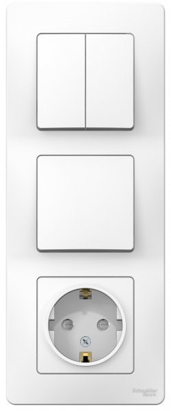 Блок Systeme Electric (ранее Schneider Electric) BLANCA (белый, скрытой установки) предназначен для сетей до 250В, состоит из розетки на 16А с заземлением и шторками, одноклавишного и двухклавишного выключателей на 10А. Двухклавишный выключатель позволяет управлять двумя источниками света из одной точки. Блок удобен в применении и отлично подходит для коридора. Корпус изделия выполнен из ABS-пластика.