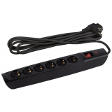 Сетевой фильтр ЭРА SFX-6es-2m-B рассчитан на одновременное подключение большого количества техники. На корпусе расположены 6 розеток с заземлением. Отличительной особенностью модели выступает прочный корпус из негорючего полипропилена, надежный трехжильный провод, терморазмыкатель на 10А, который защищает приборы от перегрузки, а также варистор, конденсатор и дроссель для защиты подключенных устройств от импульсных и высокочастотных помех. На корпусе расположена кнопка выключения. Сетевой фильтр разработан инженерами компании ЭРА, проходит проверку на всех этапах производства, гарантируя высокое качество его исполнения. Длина провода модели составляет 2 метра. Удлинитель удобно использовать в пределах одной комнаты. Сетевой фильтр имеет кольцо на шнуре, благодаря чему прибор можно быстро выдернуть из сети.