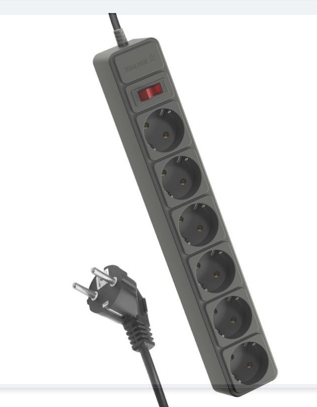 Сетевой фильтр КОСМОС 3м 6 гнезд, пвс 3x1мм2, черный