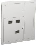 Используется для сборки этажного распределительного щита на 3 квартиры, предназначенного для приема и распределения электроэнергии в жилых и общественных зданиях, а также для защиты отходящих линий при перегрузках и коротких замыканиях.Сварной металлический корпус состоит из трех отсеков: вводно-учетного, распределительного, отсека слаботочного оборудования. В вводно-учетном и распределительном отсеках размещены DIN-рейки для крепления счетчиков (по количеству квартир). В распределительном отсеке установлены DIN-рейки для аппаратов групповых линий и рейка для установки шин N и РЕ. Отсек укомплектован оперативной панелью. Отсек слаботочного оборудования снабжен перфорированными профилями для прокладки теле- и радиосетей, телефонных линий, сетей охранной сигнализации, домофонов и т.п. Для обеспечения пожарной безопасности между слаботочным и силовым отсеками расположена разделительная перегородка.