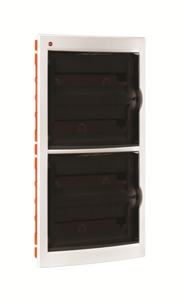 Встраиваемый распределительный щиток ДКС предназначен для монтажа в жилых и административных помещениях для установки автоматических выключателей любых производителей: таймеров, устройств защитного отключения и управления освещением и т.д. Щиток имеет оцинкованную DIN-рейку и суппорт, заглушки для пустых модулей, сборочные винты и заглушки для них, самоклеящуюся этикетку для маркировки цепей. Межосевое расстояние между рядами 150-175-200 мм. Преперфорированные отверстия и насечки на задней стенке обеспечивают точное соединение с пластиковыми трубами и обеспечивают легкий монтаж. Дверца выполнена из затемненного полупрозрачного пластика. Специальная конструкция петель дает возможность открывать дверцу более чем на 180°. Степень пыле- и влагозащиты IP 41. Количество модулей - 72. Параметры щитка: ширина - 455 мм, высота - 850 мм, глубина встраиваемой части - 98 мм. Материал - термостойкий и ударопрочный пластик. Цвет - белый.