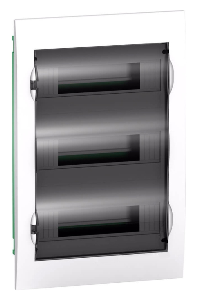 Распределительный щиток Systeme Electric серии City9 Box предназначен для установки аппаратов защиты и управления бытовой электроустановки. Щиток встраивается в стену, имеет 3 DIN-рейки для установки 36 аппаратов по 18 мм. Прозрачная дверь щитка может быть установлена с правой или левой стороны. Щит Systeme Electric City9 Box на 100% совместим с модульным оборудованием DEKraft и Systeme Electric (ранее Schneider Electric MIP22312S).