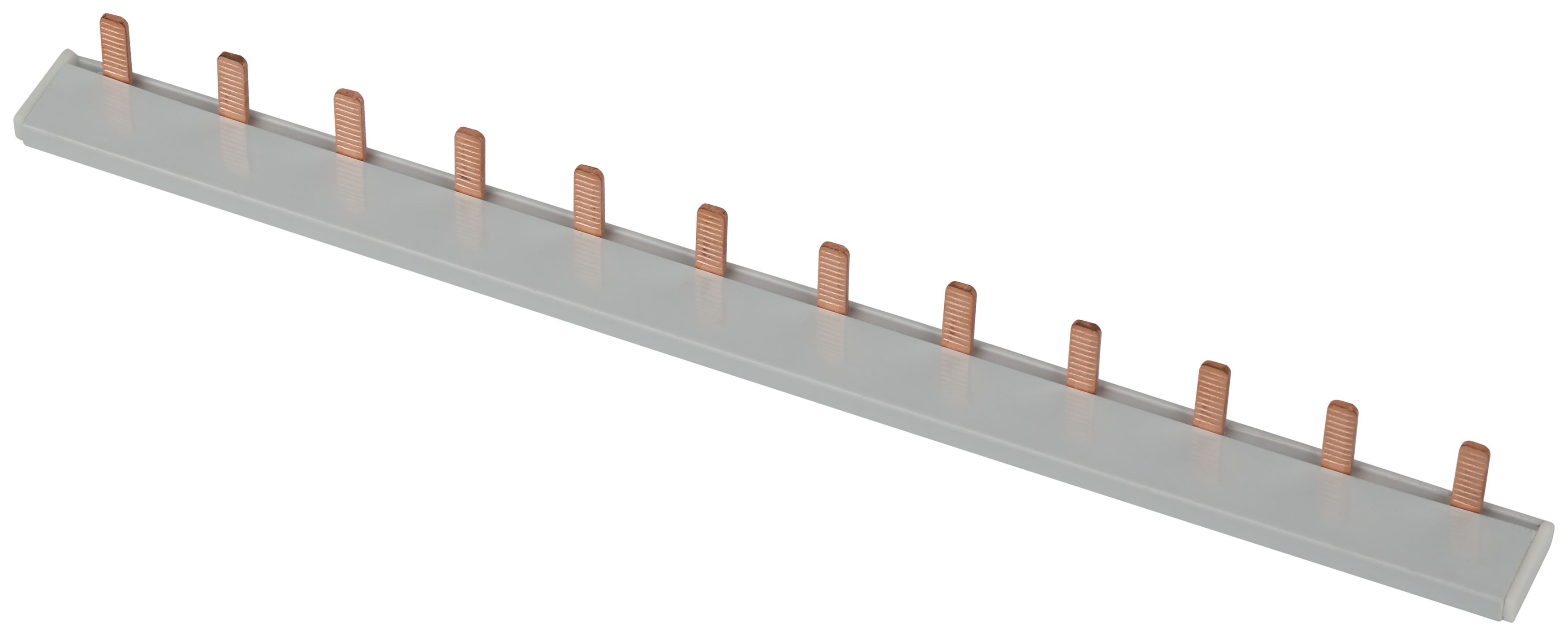 - На контактных частях шины выполнены насечки, которые обеспечивают надёжную фиксацию в корпусе модульного аппарата.