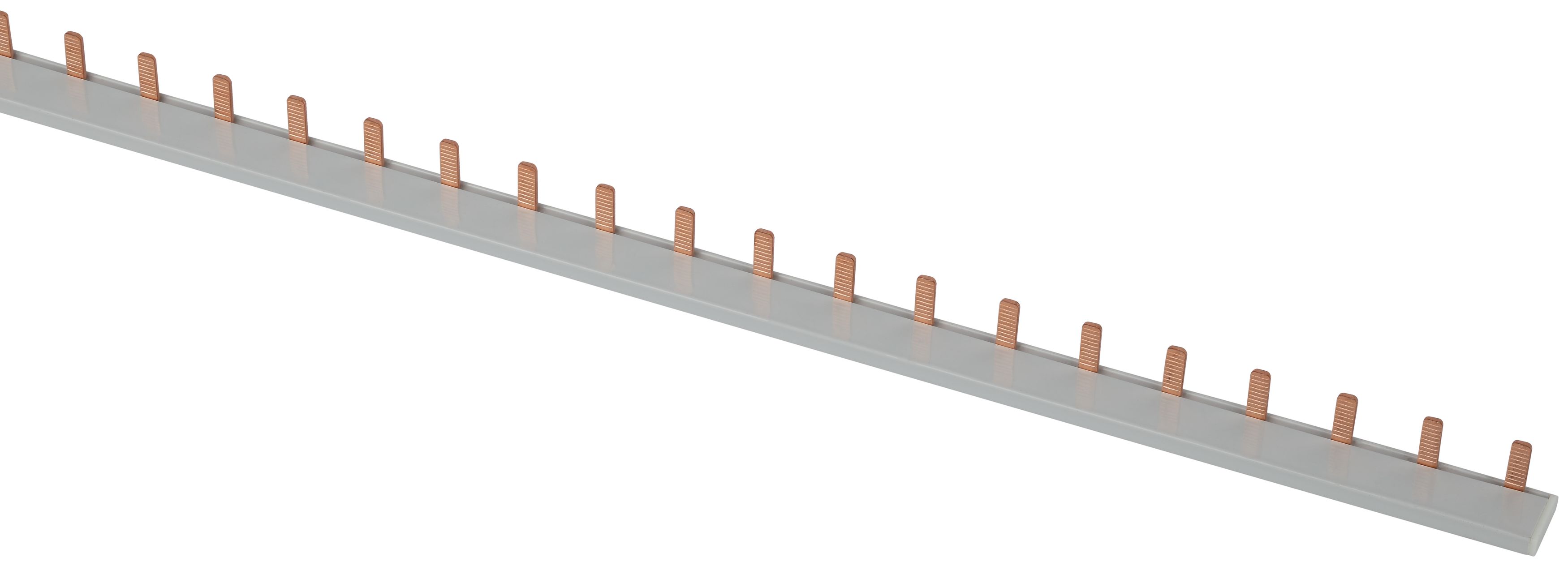 Шины соединительные "Гребёнки" представляют собой токоведущие пластины, выполненные из меди, закрепленные в корпусе из диэлектрического материала. Применяются при внутрищитовом монтаже для подачи питания определённых полюсов и фаз к модульным аппаратам защиты сети (автоматические выключатели, диф. автоматы, ВДТ/УЗО, выключатели нагрузки) путём их параллельного соединения. Шины с шагом 18 мм предназначены для коммутации аппаратов шириной, кратной одному модулю.Являются альтернативой перемычкам из провода и позволяют: - сократить количество проводников в щитке до минимума, - сэкономить пространство и без особых усилий размещать новые элементы, - обеспечить более стабильное и долговечное соединение за счёт цельной токоведущей части и индивидуального подключения каждого устройства к шине только через один проводник (контакт шины). При обрезке шины до требуемого размера обязательно применение торцевых заглушек.
