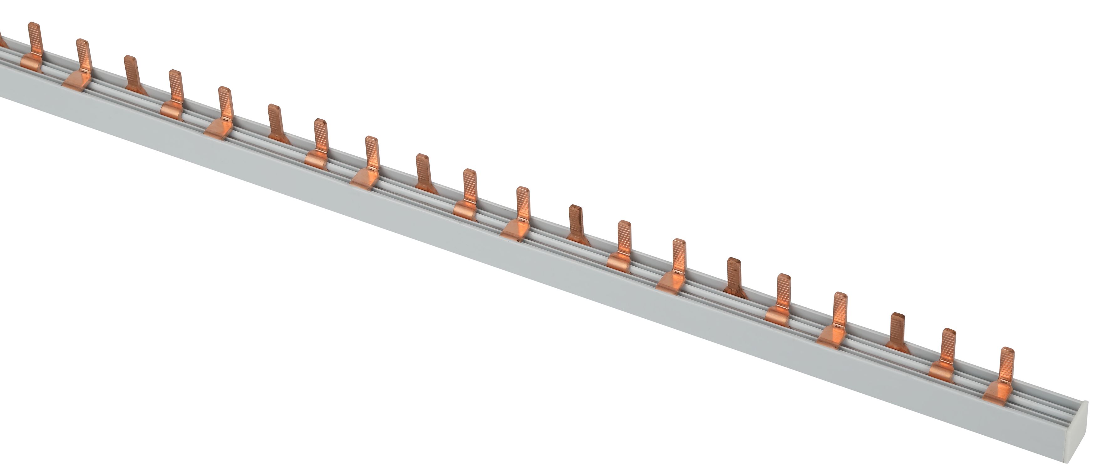 - На контактных частях шины выполнены насечки, которые обеспечивают надёжную фиксацию в корпусе модульного аппарата.