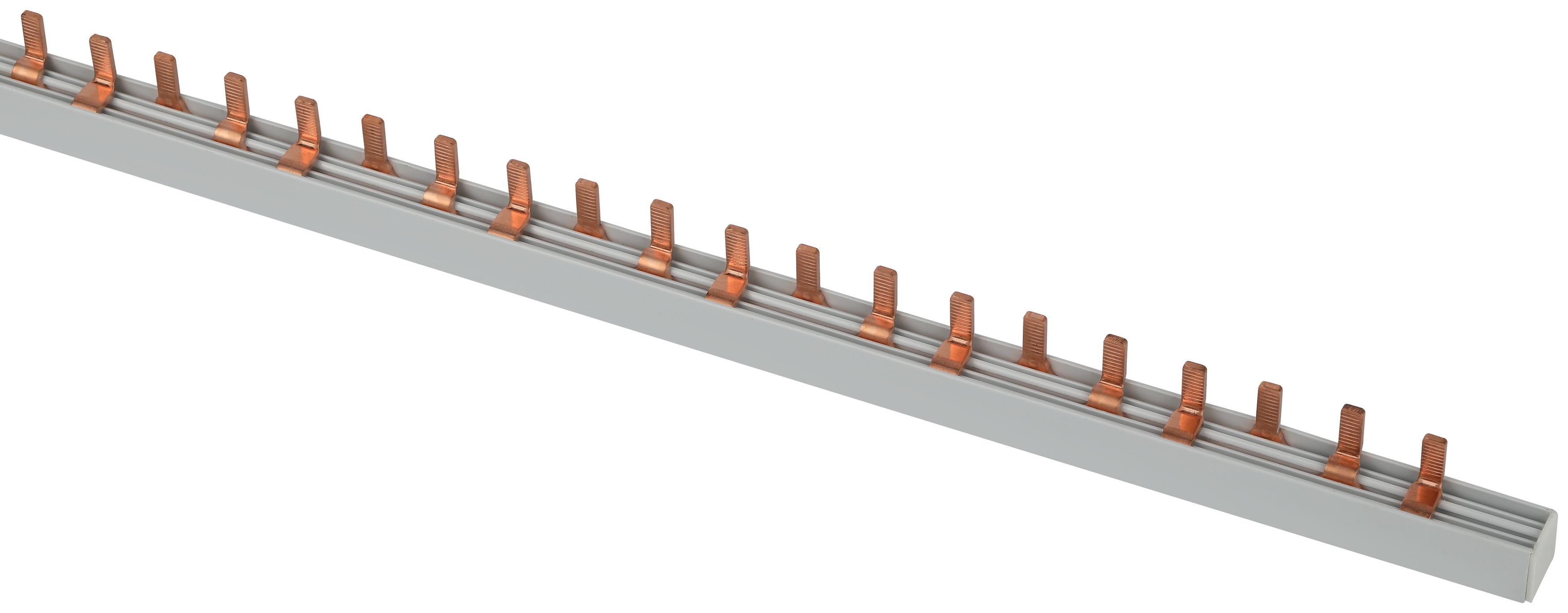 Шины соединительные "Гребёнки" представляют собой токоведущие пластины, выполненные из меди, закрепленные в корпусе из диэлектрического материала. Применяются при внутрищитовом монтаже для подачи питания определённых полюсов и фаз к модульным аппаратам защиты сети (автоматические выключатели, диф. автоматы, ВДТ/УЗО, выключатели нагрузки) путём их параллельного соединения.Шины с шагом 18 мм предназначены для коммутации аппаратов шириной, кратной одному модулю.