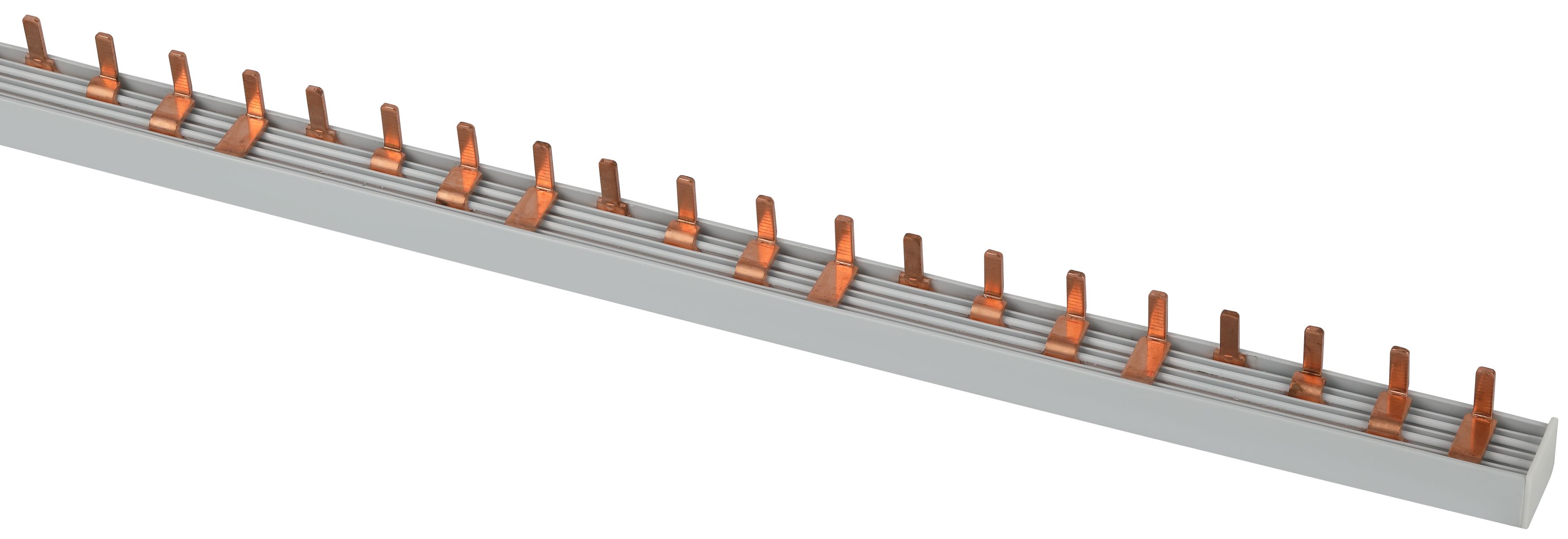 - На контактных частях шины выполнены насечки, которые обеспечивают надёжную фиксацию в корпусе модульного аппарата.