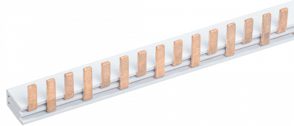 Обеспечивают удобное и быстрое соединение групп дифференциальных автоматических выключателей серии АВДТ32М со смещенным расположением вводных клемм. Шины, рассчитанные на номинальный ток 63 А, могут быть использованы с номинальным током 100 А, если вводной автомат подключать по центру.Шина для АВДТ32М на 108 модулей имеет выводы PIN через каждые 9мм (схема расположения модулей 1/2+1/2).
