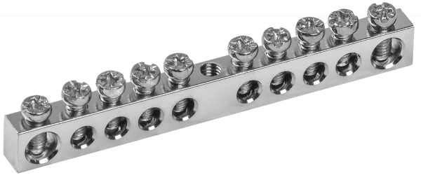 Применяются в щитовом оборудовании для подсоединения нулевых рабочих (N) и нулевых защитных проводов (РЕ). Крепление шины предусмотрено по центру (типы 8/1; 14/1) и по краям (типы 8/2 и 14/2) через изолятор нулевой шины на 35 мм монтажную DIN-рейку и через угловые изоляторы нулевой шины, а также непосредственно на панель щита. При подключении к шинам медных многожильных проводов рекомендуется оконцевание их наконечниками-гильзами. Выполнены из латуни.Шины с никелевым покрытием обладают более высокой коррозионной стойкостью материала и привлекательным внешним видом, что обеспечивает возможность их применения в средах с повышенной агрессивностью.
