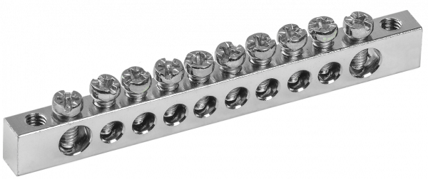 Применяются в щитовом оборудовании для подсоединения нулевых рабочих (N) и нулевых защитных проводов (РЕ). Крепление шины предусмотрено по центру (типы 8/1; 14/1) и по краям (типы 8/2 и 14/2) через изолятор нулевой шины на 35 мм монтажную DIN-рейку и через угловые изоляторы нулевой шины, а также непосредственно на панель щита. При подключении к шинам медных многожильных проводов рекомендуется оконцевание их наконечниками-гильзами. Выполнены из латуни.Шины с никелевым покрытием обладают более высокой коррозионной стойкостью материала и привлекательным внешним видом, что обеспечивает возможность их применения в средах с повышенной агрессивностью.