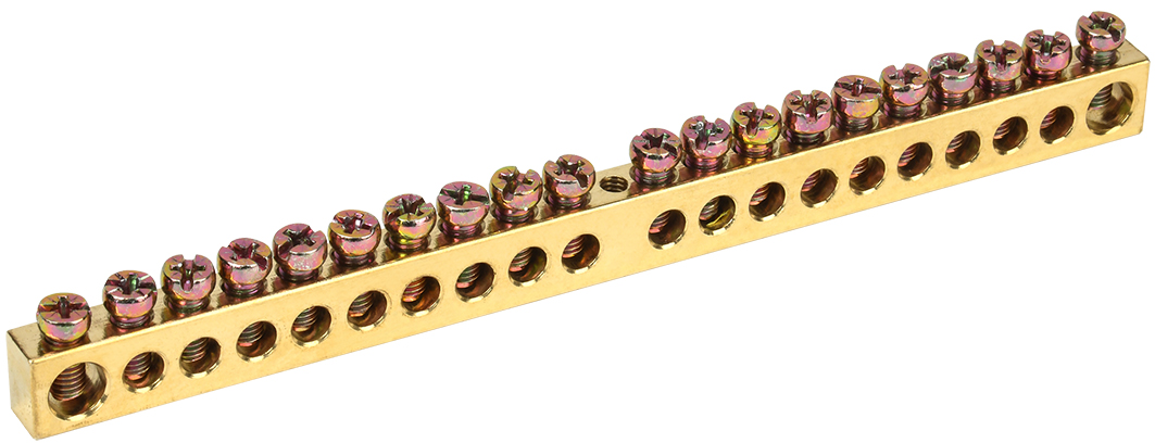 Применяются в щитовом оборудовании для подсоединения нулевых рабочих (N) и нулевых защитных проводов (РЕ). Крепление шины предусмотрено по центру (типы 8/1; 14/1) и по краям (типы 8/2 и 14/2) через изолятор нулевой шины на 35 мм монтажную DIN-рейку и через угловые изоляторы нулевой шины, а также непосредственно на панель щита. При подключении к шинам медных многожильных проводов рекомендуется оконцевание их наконечниками-гильзами. Выполнены из латуни.