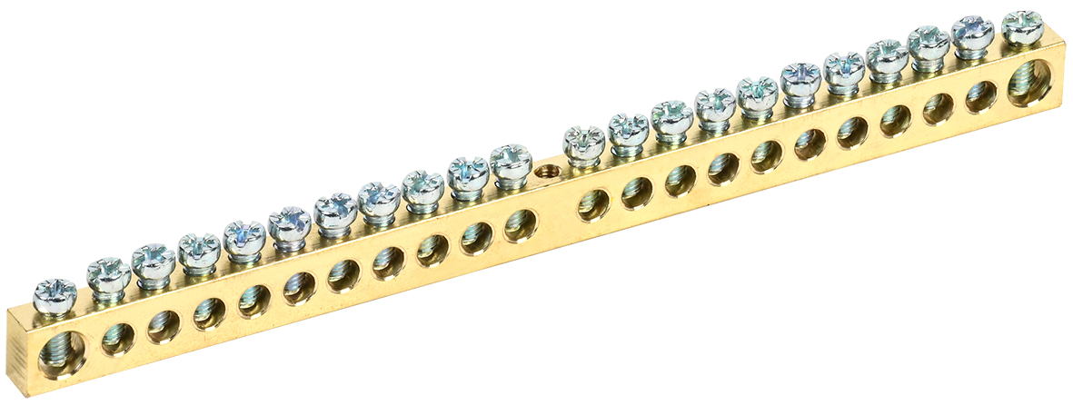 Применяются в щитовом оборудовании для подсоединения нулевых рабочих (N) и нулевых защитных проводов (РЕ). Крепление шины предусмотрено по центру (типы 8/1; 14/1) и по краям (типы 8/2 и 14/2) через изолятор нулевой шины на 35 мм монтажную DIN-рейку и через угловые изоляторы нулевой шины, а также непосредственно на панель щита. При подключении к шинам медных многожильных проводов рекомендуется оконцевание их наконечниками-гильзами. Выполнены из латуни.