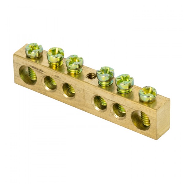 Шина PEN "ноль-земля" (6x9мм) 6 отв. латунь крепеж по центру розн. стикер EKF PROxima /1