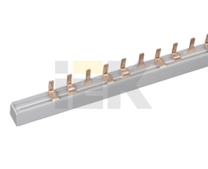 Применяются для удобного и безопасного соединения групп: ВА (выключатели автоматические), АД (автоматы дифференциальные), ВД (выключатели дифференциальные), ВН (выключатели нагрузки). Шины с шагом 18 мм предназначены для коммутации аппаратуры шириной, кратной одному модулю, шины с шагом 27 мм предназначены для коммутации изделий шириной, кратной полутора модулям. Шины, рассчитанные на номинальный ток 100 А, могут быть использованы с номинальным током 125 А, если вводной автомат подключать по центру. Для полуторамодульных шин имеются боковые заглушки.