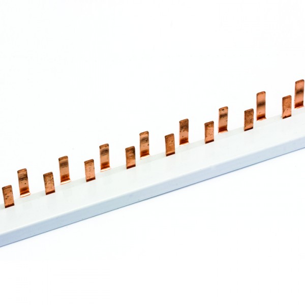 Шины соединительные производятся в двух исполнениях: FORK (вилка) и PIN (гребенка) на номинальные токи 63 и 100 А, на одно-, двух-,трех- и четырехфазную нагрузку. Шины соединительные представляют собой пластины, выполненные из меди (шины на 100 А из луженой меди), закрепленные в корпусе из диэлектрического материала, не поддерживающего горение, и выпускаются стандартной длиной 1 метр.